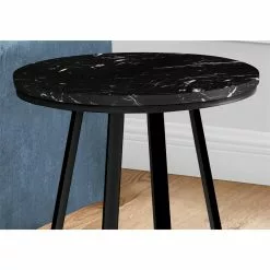 - Bring a modern tone to your living room, office space, family room or den with this stylish black marble-look/black metal round top end table
