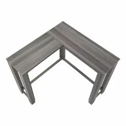 Grab your guests’ attention with this stylish grey accent corner console table. Featuring a unique space-saving design and a two tiered open shelf concept, this modern unit is perfect for dressing up any corner in your home or displaying your favourite decorative items.