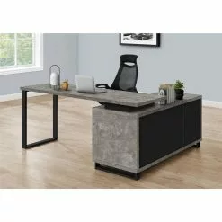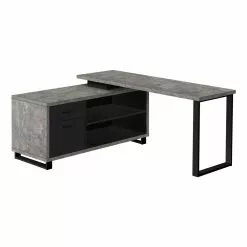Monarch Specialties 72-in Grey Faux Concrete Modern/Contemporary L-Shaped Desk