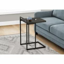 - C-shaped accent table with a metal base that can be slid under a sofa or bed to keep items close by when you are seated