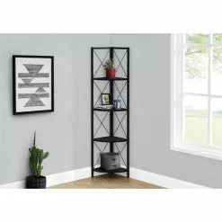 Monarch Specialties Black Metal 4-Shelf Corner Bookcase