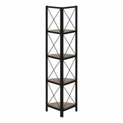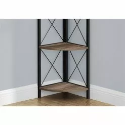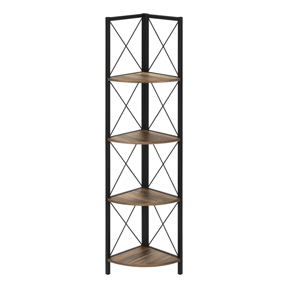 Monarch Specialties Brown Faux Wood Metal 4-Shelf Corner Bookcase
