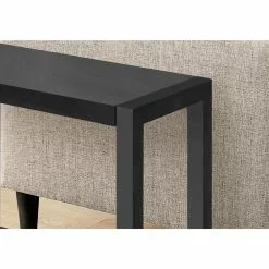 Here’s an accent table that holds its own. With its thick tabletop, bottom shelf, and black metal legs, this robust side table stands strong next to a sofa, chair, or bed. Finished on all sides, it can be positioned in any direction to fit both narrow and wide spaces. The two tiers in a black finish have ample surfaces to display items in your living room or bedroom. Boasting a clean, contemporary style, this rectangular end table coordinates with any décor.