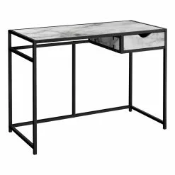 Monarch Specialties COMPUTER DESK – 42″L / WHITE MARBLE-LOOK / BLACK METAL
