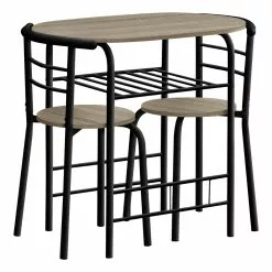 Create a compelling and cohesive aesthetic in your space with this 3-piece dining set, which includes 1 table and 2 chairs. Perched atop curved metal legs, the oval table is crafted from manufactured wood, while the chairs feature a ladder-back design with tubular metal detailing. Stylishly finished in a dark taupe faux wood laminate, the seats and the table top are combined with a black metal frame, so the set can blend with a variety of colour schemes.