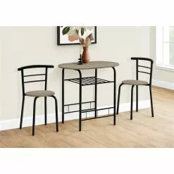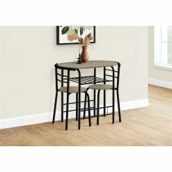 Monarch Specialties Dark Taupe Faux Wood And Black Dining Room Set With Oval Table – 3-Piece