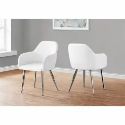 Monarch Specialties Dining Chair White Leather Look And Chrome – 33-in H – Set Of 2
