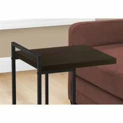 - C-shaped accent table with a metal base that can be slid under a sofa or bed to keep items close by when you are seated