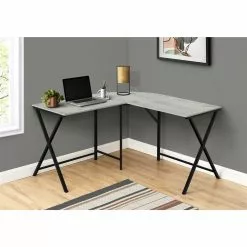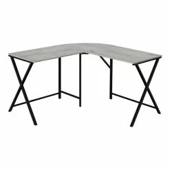 Monarch Specialties L Shaped Corner Computer Desk Grey Top And Black Metal – 55-in L