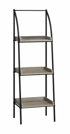 Showcase your favourite books and other decor items with this modern metal bookshelf. Finished in a stylish, two tones dark taupe and black, this bookcase will easily complement your existing decor. Featuring three open shelves, it provides an abundance of storage space for picture frames, plants, candles and any other collectibles. Whether it be in your bedroom, office or living room this bookshelf will be a welcome addition to any home.