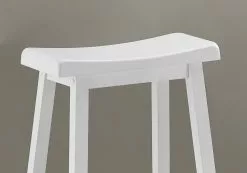 This set of two bar stools in a white finish is the perfect addition for kitchens, game room or for extra seating when company arrives. With a comfortable saddle seat and well positioned footrest, these classic bar height stools will be the staple of many memorable evenings with friends and family.