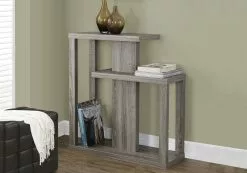 Enhance your living space with this beautifully crafted rectangular dark taupe wood-look hall console table finished on all sides. Featuring clean lines and a three tiered open concept design, this modern style console is perfect for dressing up any wall in your home or displaying your favourite decorative items.