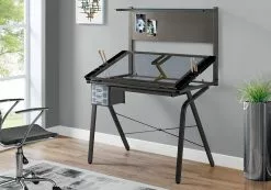 - Tempered glass table top adjusts up to 5 angles ranging from 25 to 60 degrees