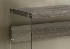 Enhance the look of your home with this trendy contemporary-style table. The rectangular top is finished in a sophisticated dark taupe wood-look supported with sturdy and stylish 8 mm thick tempered glass sides. This multifunctional console table has ample surface space to showcase decorative display items, a lamp, or simply as a chic accent piece in your living room, hallway or office space.
