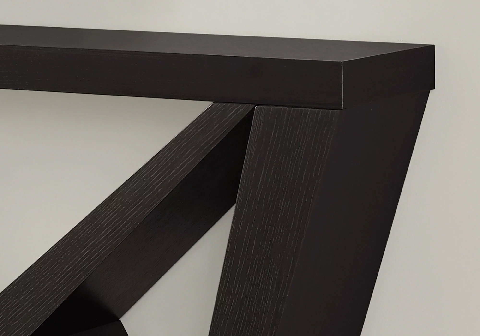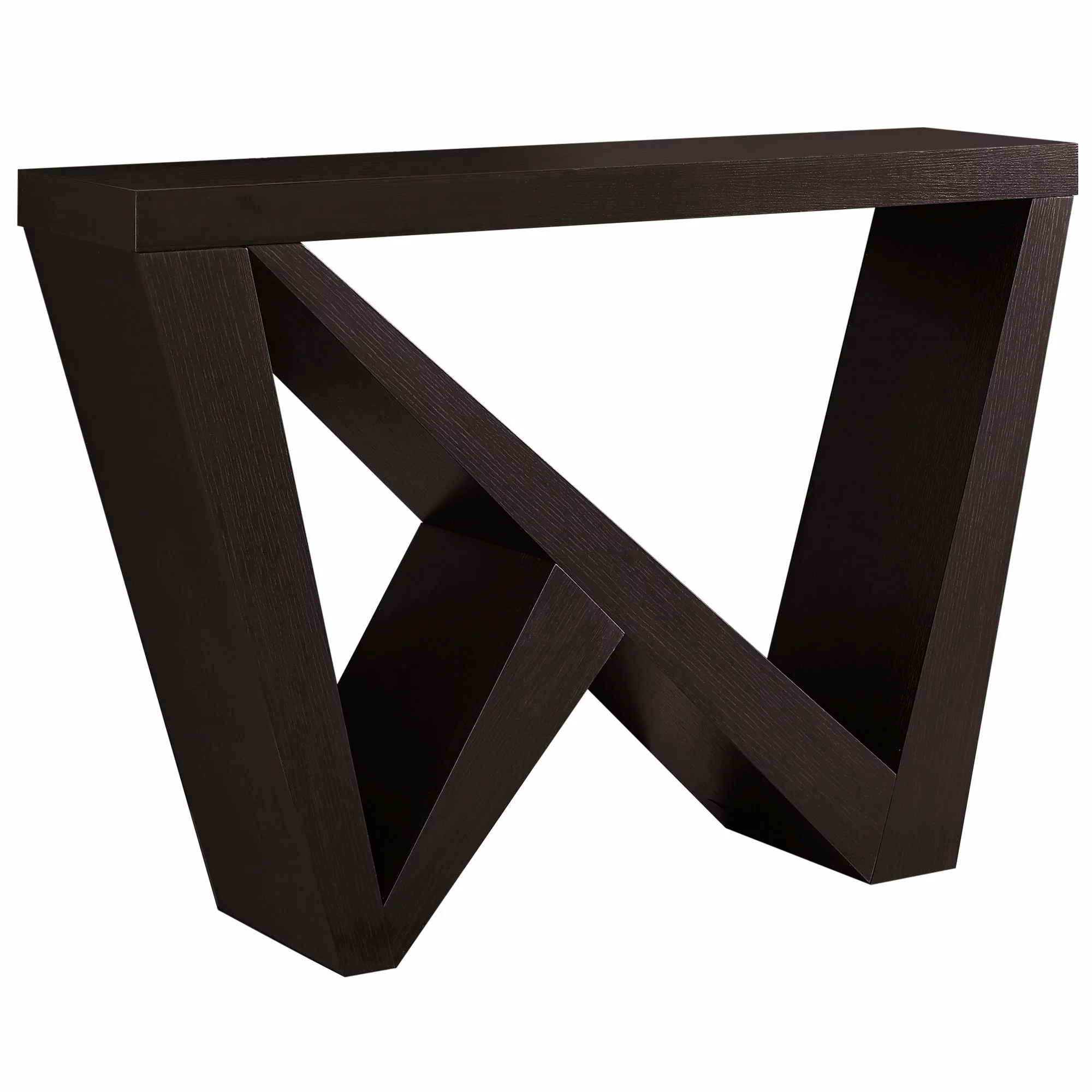 Make a bold statement in your living room or hallway with this 48″” long cappuccino console table. Featuring a thick panel design, asymmetrical lines, this table will surely make an eye-catching addition to your living space. Perfect for displaying pictures, decorative pieces or books this console table is the ideal combination of fashion and function.