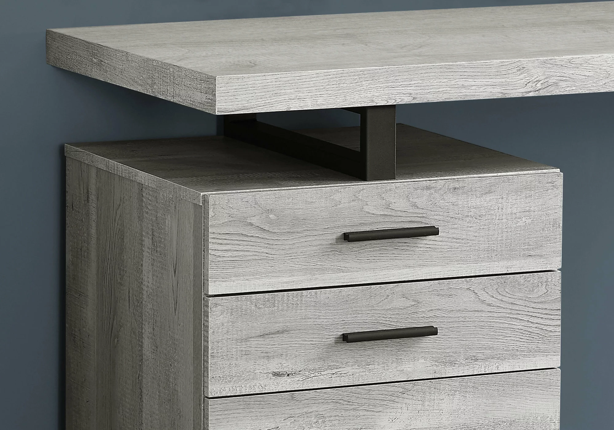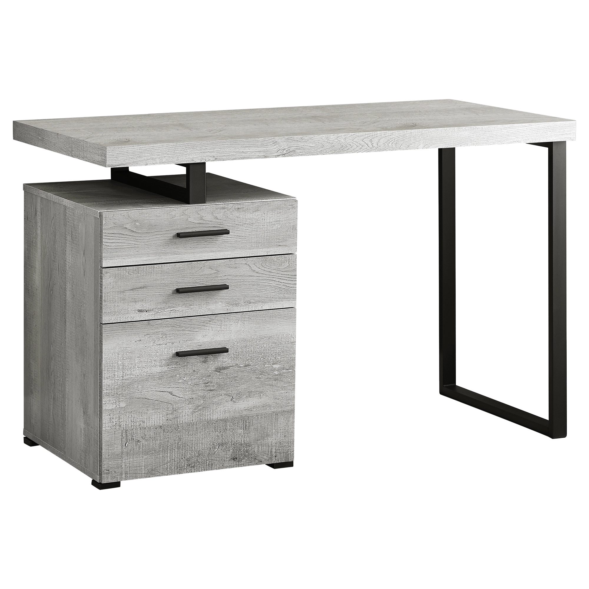 - Contemporary desk with a thick top finished in a grey reclaimed wood-look