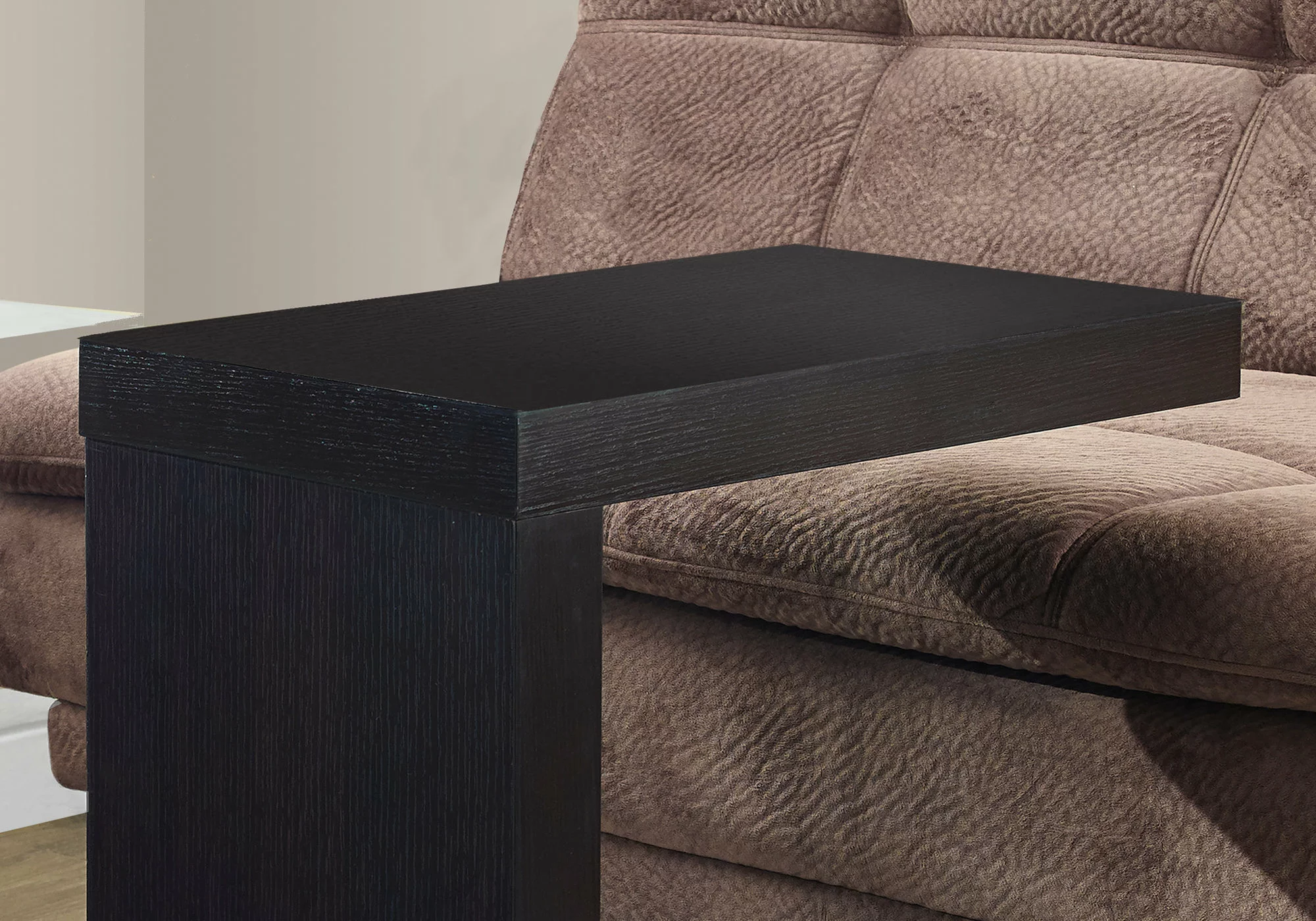 Enhance your living space with this modern cappuccino accent/snack table. Featuring thick panel construction and modern sleek lines, this is not your ordinary snack table! With ample surface area to place your snacks, drinks, laptops or tablets, and a simplistic touch to suit any décor.