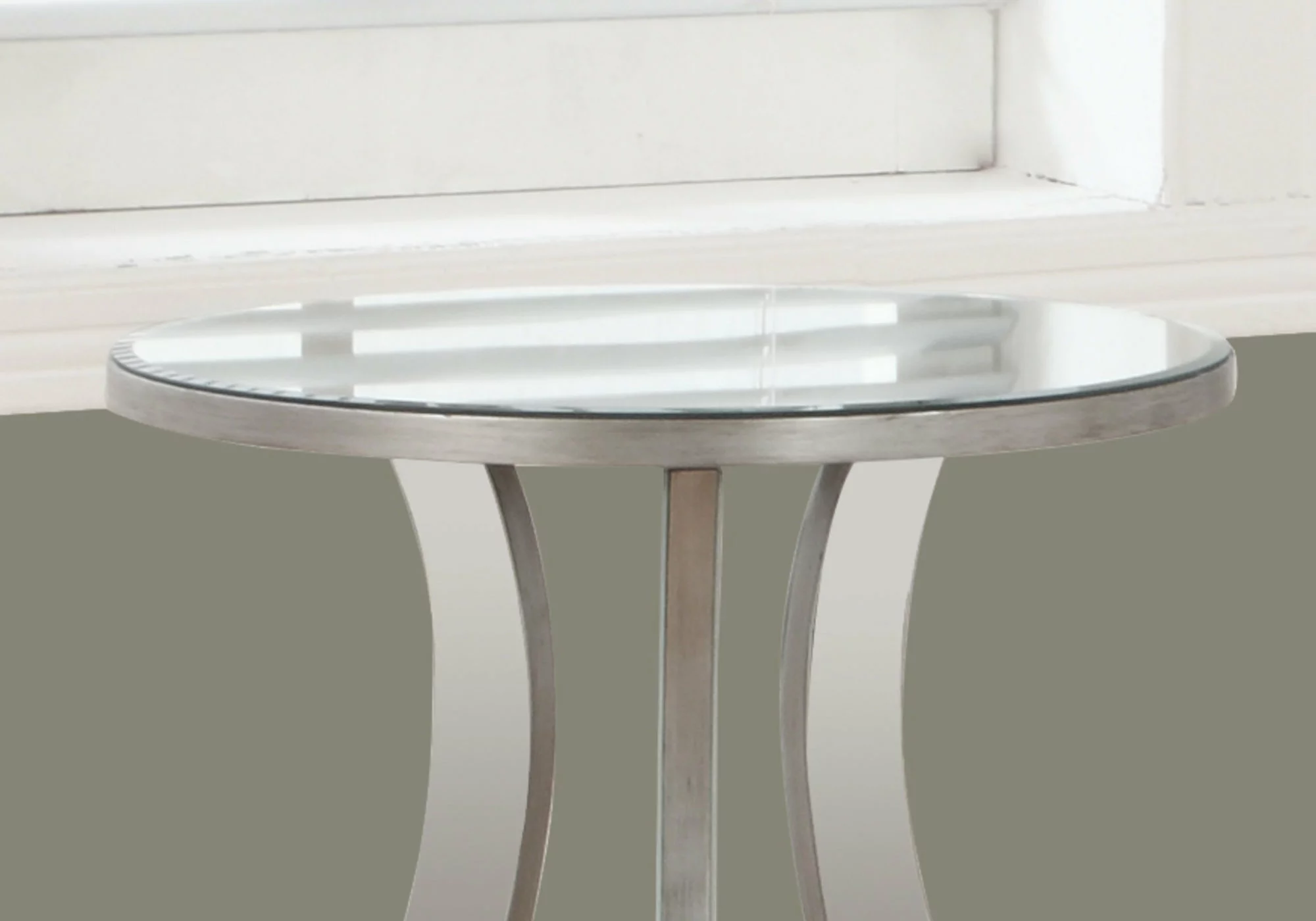 Monarch Specialties Monarch Accent Table – 20-in X 24-in – Glass – Silver