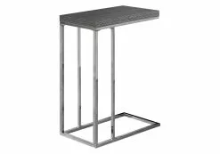 What a convenient way to eat or drink on your couch! This contemporary style rectangular accent table with a gray reclaimed-look finish has sufficient space to place your tablet, snacks, drinks or even meals. The chrome metal base provides sturdy support along with a fashionable flair that will suit any décor. A versatile snack C-table to place in your living room, office space, family room or den.