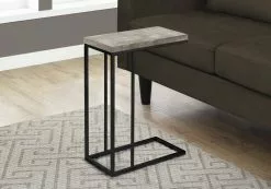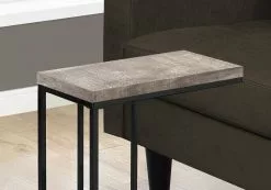 What a convenient way to eat or drink on your couch! This rustic urban style rectangular accent table with a taupe reclaimed wood-look finish has sufficient space to place your tablet, snacks, drinks or even meals. The black metal base provides sturdy support along with a fashionable flair that will suit any decor. A versatile snack C-table to place in your living room, office space, family room or den.