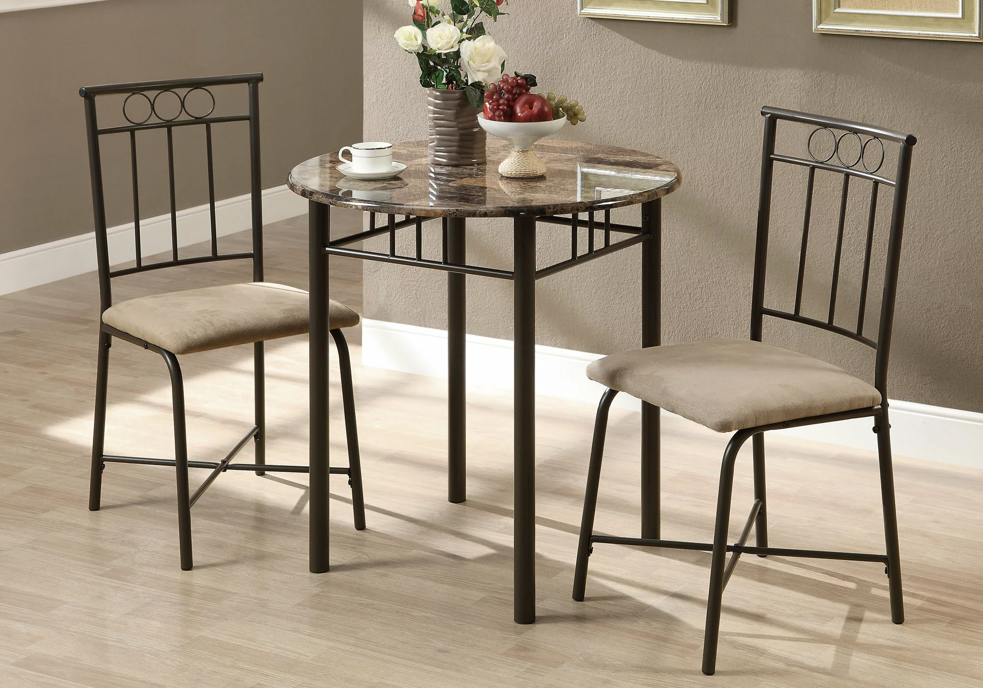 Monarch Specialties Monarch Brown Marble 3 Pice Metal Dining Set