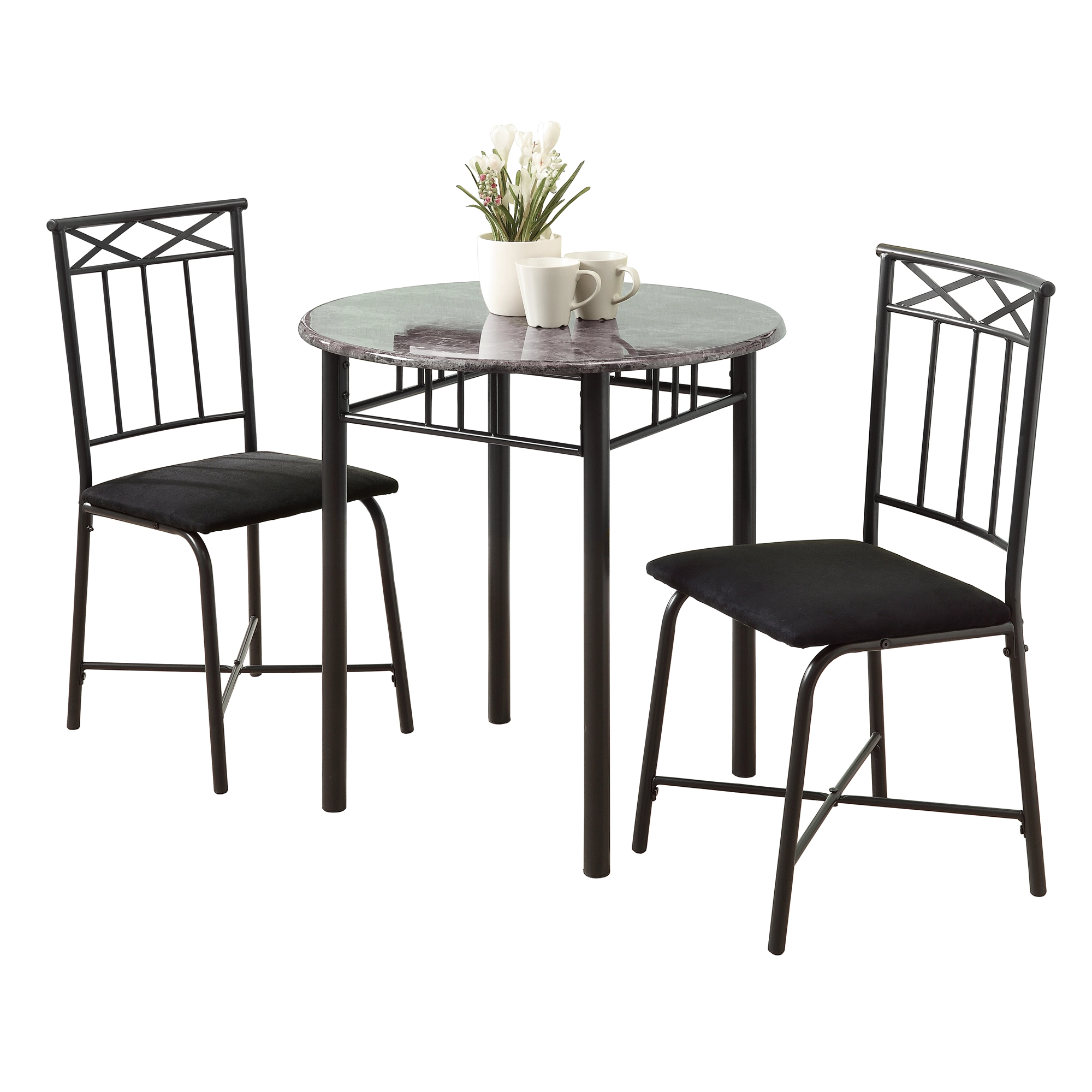 Monarch Specialties Monarch Gray Marble 3 Piece Black Dining Set