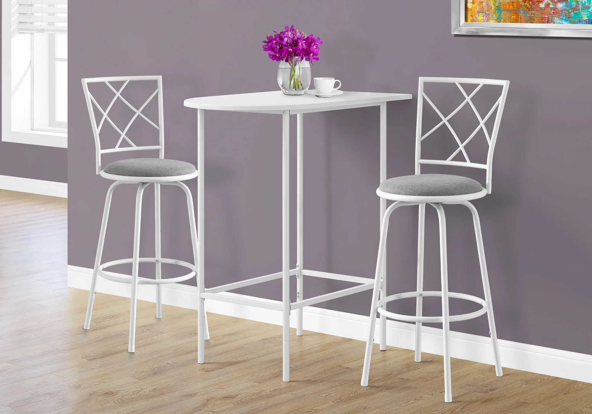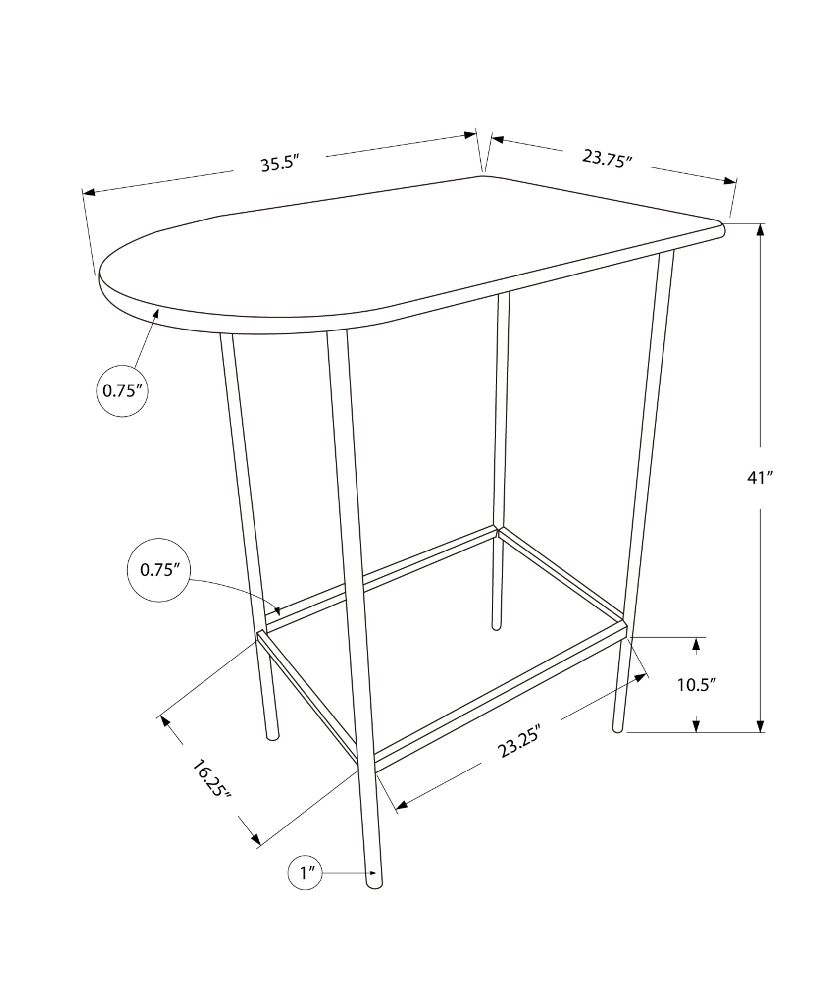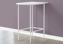 Enhance the look of your dining area with this trendy and contemporary bar by Monarch Specialties®. This product features clean lines and a chic white finish. This moon shaped home bar table can be placed up against a wall to save space in smaller living spaces like condos. With sturdy metal legs and ample surface area to place appetizers or drinks this piece is sure to provide long lasting enjoyment. Chairs sold separately.