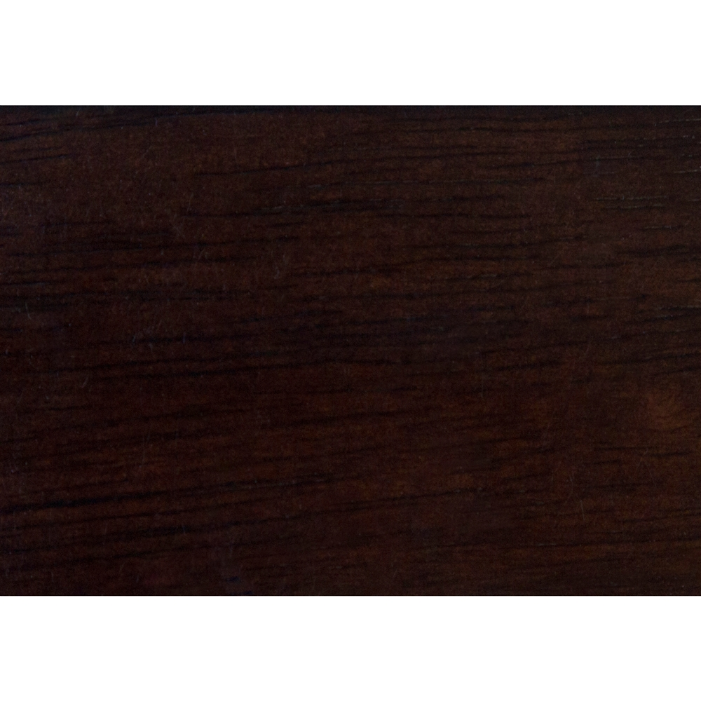 - Supportive, curved backrests with a vertical panel design, sturdy solid wood legs, and convenient footrests are in a dark-brown espresso finish