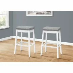 Monarch Specialties Upholstered Bar Stool, Grey /White, 2-Pack