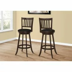 Monarch Specialties Upholstered Swivel Bar Stool, Espresso/Black, 2-Pack